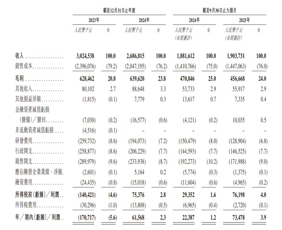 于2023年度、2024年度、2024年以及2025年截至9月30日止九个月,科大智能实现收入分别约为30.25亿元、26.87亿元、18.82亿元、19.04亿元人民币。